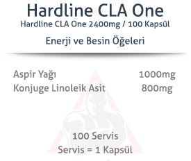 Hardline CLA One 1000 Mg 100 Jel Kapsül servis başına 1.000 mg Aspir yağı içerir.